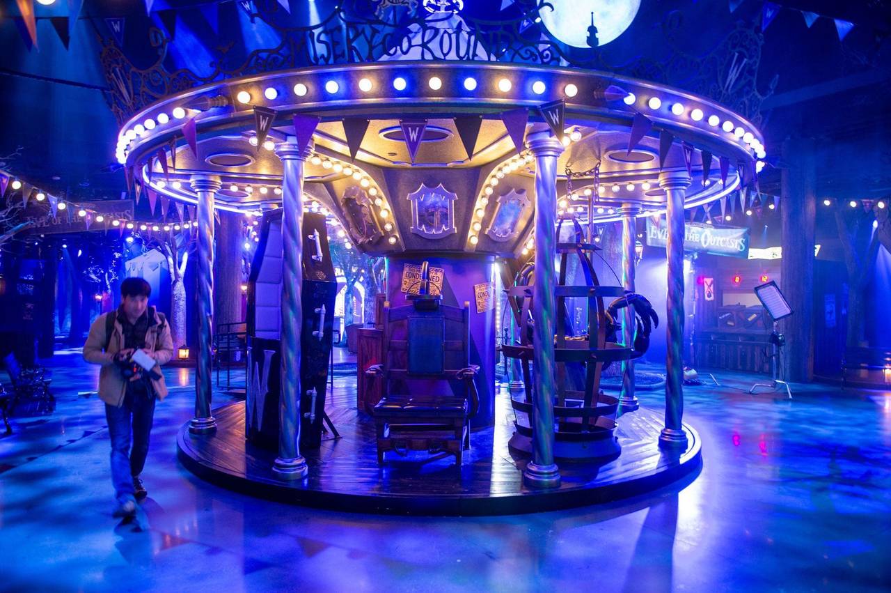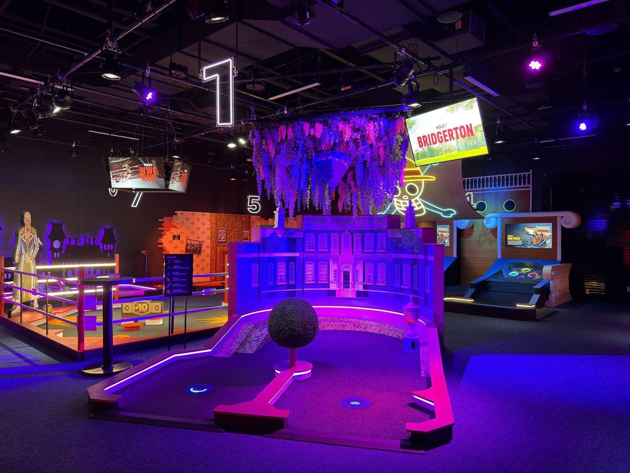 Alle Erlebnisse sind mit dem Netflix-Programm verbunden: Die Escape-Rooms lehnen an die Anime-Piratengeschichte «One Piece» an, jede Minigolf-Station ist einer anderen Serie gewidmet, von «Bridgerton» bis «Stranger Things». Die größte Fläche bekam «Wednesday»: Zum Start der zweiten Staffel des Addams-Family-Ablegers können die Besucher durch einen düsteren Jahrmarkt mit Minispielen schlendern und auch ein Rätsel lösen. Startpunkt ist ein recht aufwendiger Nachbau des Zimmers von Wednesday Addams im Außenseiter-Internat Nevermore Academy.