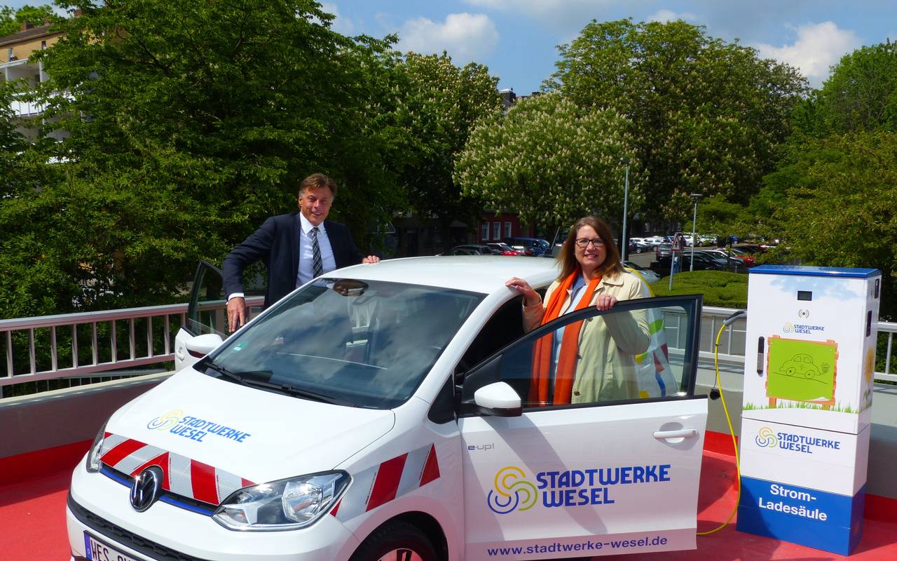 Die Stadtwerke Wesel erweitern das Netz der Ladestationen für Elektroautos. Auf dem Parkdeck am Bühnenhaus wurde jetzt die eine neue Ladestation der Stadt eröffnet. Damit betreibt der örtliche Versorger sieben Aufladestationen in Wesel für die emissionsfreien Stromer. Das System wird weiter ausgebaut - im Juli soll an der Gindericher Grundschule eine weitere Ladeinfrastruktur installiert werden. Zuletzt wurden vier Ladesäulen auf einen Schlag installiert. Diese befinden sich in der Innenstadt und zwar an der Bismarckstraße Höhe Kreisverkehr, am Parkplatz Heubergbad und an der Esplanade Höhe Einmündung Stettiner Straße.