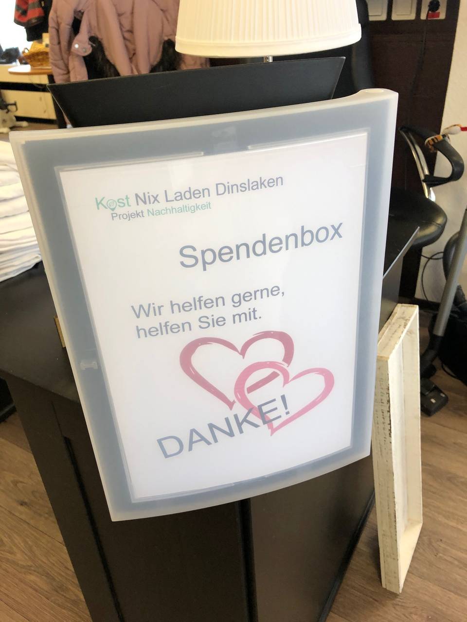 Der Kost-Nix-Laden befindet sich auf der Friedrich-Ebert-Straße 44 in Dinslaken, in unmittelbarer Nähe zum Bahnhof und der Post.