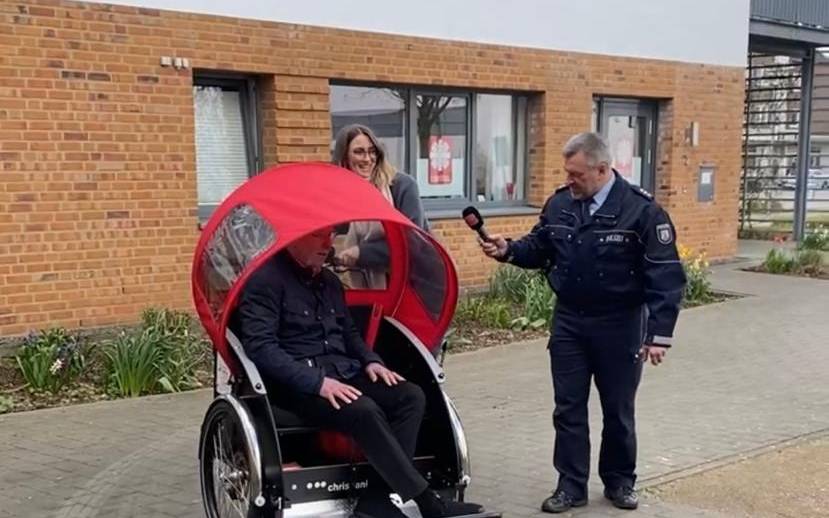 Die Rikscha fährt mit elektrischer Anfahrtshilfe - sie ist also ein Pedelec-Rad und schafft bis zu 25 Kilometer pro Stunde. Beim Fahr-Sicherheitstraining der Polizei können die Freiwilligen das Fahren üben. Einzige Voraussetzung: Sie müssen mindestens 16 Jahre alt sein.