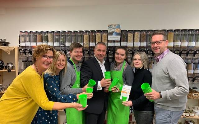 In Moers haben sich mehrere Cafés zusammengetan, damit weniger Kaffeebecher im Müll landen. CupForCup heißt das System, das auf Initiative von "Tante Pati" und CDU gestartet ist. Alle beteiligten Läden geben die grünen Mehrwegbecher gegen Pfand aus und nehmen sie wieder zurück. Auch Rathaus- und Krankenhauskantinen sind dabei. Gehofft wird, dass die Zahl noch weiter wächst. Allein in der Rathauskantine kamen bisher pro Monat rund 2000 Einwegbecher zusammen, die jetzt eingespart werden können.