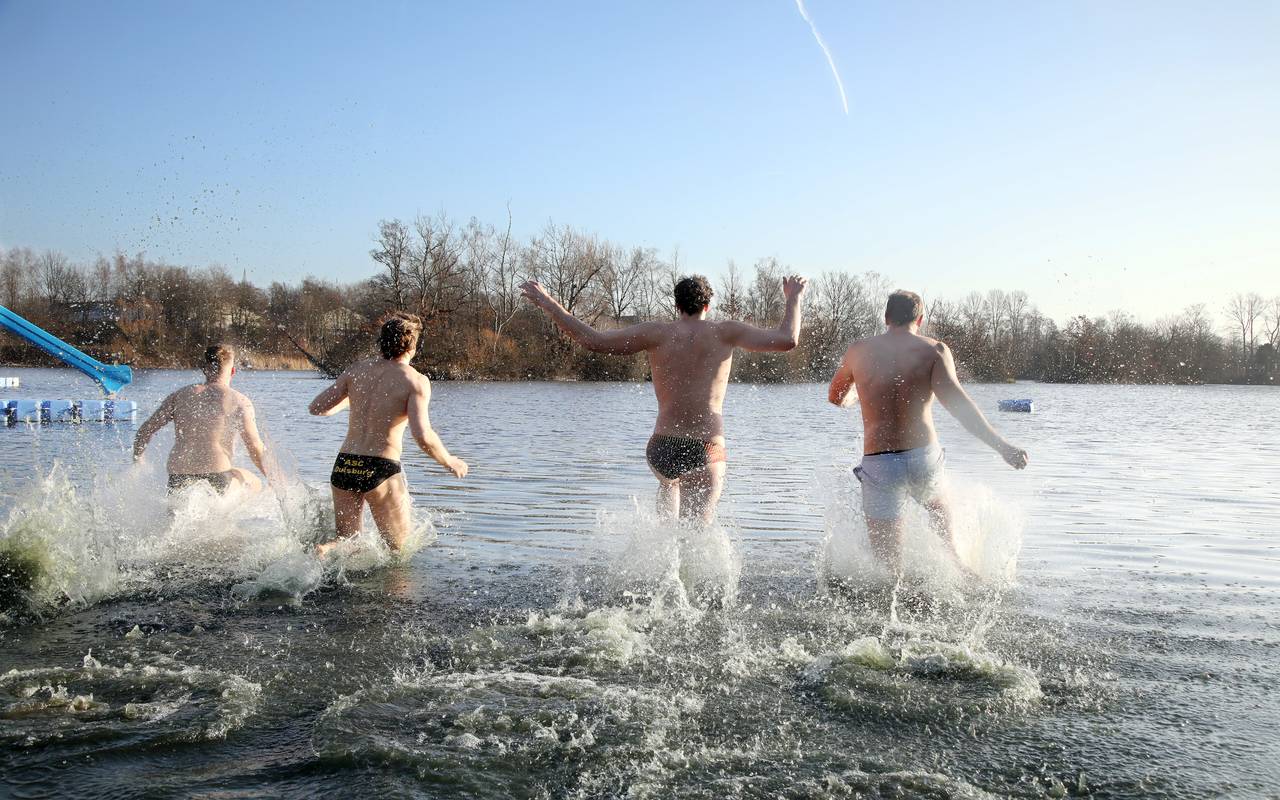 150 Schwimmer haben das neue Jahr im letzten Jahr mit einem Bad im Barbarasee in Duisburg begrüßt, auch heute ist ein Neujahrsschwimmen geplant. Eine Anmeldung ist nicht nötig.