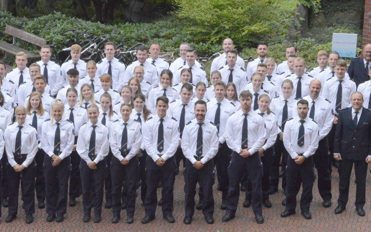 Über 60 Polizistinnen und Polizisten haben frisch ihren Dienst im Kreis Wesel angetreten. Abzüglich der Weggänge und Pensionen bleibt ein Plus von neun Kräften.