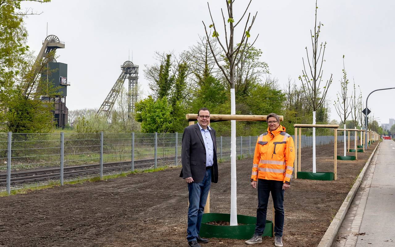 Die RAG Montan Immobilien hat die Pflanzung von Straßenbäumen im Stadtquartier Niederberg in Neukirchen-Vluyn abgeschlossen. In den vergangenen Tagen wurden insgesamt 281 Bäume gesetzt – darunter Erlen, Zerreichen, Vogel- und Bergkirschen. 16 Bäume konnten aus dem alten Bergwerksbestand gerettet werden. Außerdem wurden an der Niederrheinallee verschiedene Sträucher ausgebracht. In den kommenden drei Jahren übernimmt die RAG Montan Immobilien die Pflege der Neupflanzungen, danach geht diese Aufgabe an die Stadt Neukirchen-Vluyn über. Wegen der Pflanzungen musste die Niederrheinalle teilweise einseitig gesperrt werden.