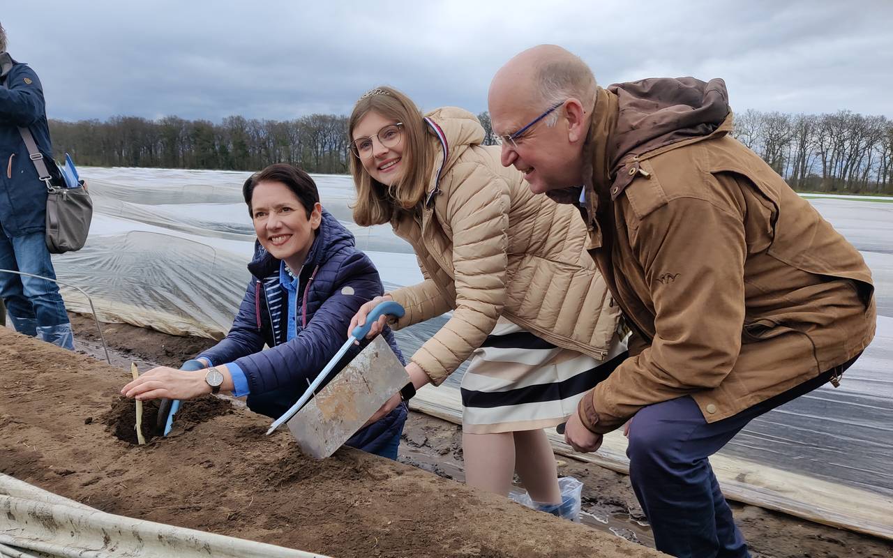 Auf dem Spargelhof Heinen in Wesel ist heute offiziell die Spargelsaison eröffnet worden. Vor Ort waren NRW-Landwirtschaftsministerin Silke Gorißen und NRW-Spargelkönigin Svea I.