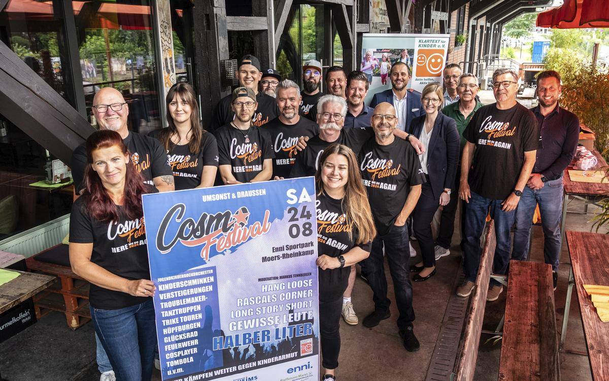 Beim Cosmo-Festival in Moers geht es heute (24. August) wieder familiär und rockig zu. Am ENNI-Sportpark treten bis in die Nacht Live-Bands auf. Außerdem gibt es ein Kinderprogramm mit Triker-Touren, Cosplayern und Mitmachaktionen. Das Cosmo-Festival ist kostenlos. Alle Erlöse gehen an den Verein "Klartext für Kinder" - letztes Jahr waren das über 22tausend Euro. Hier gibt es die Infos.