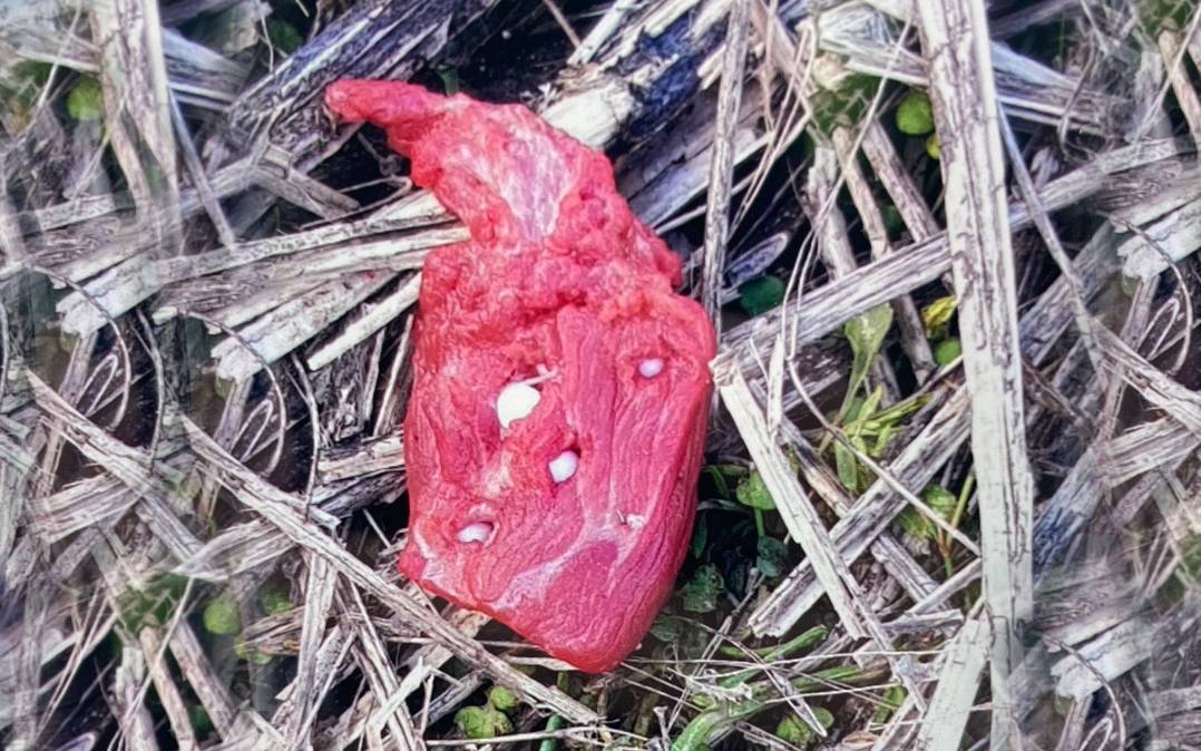 Ein Hund hatte den Köder gestern beim Gassi gehen gefressen. Danach hatte die Polizei die Köder in Hamminkeln aufgesammelt. Darin war eine weiße Tablette enthalten.