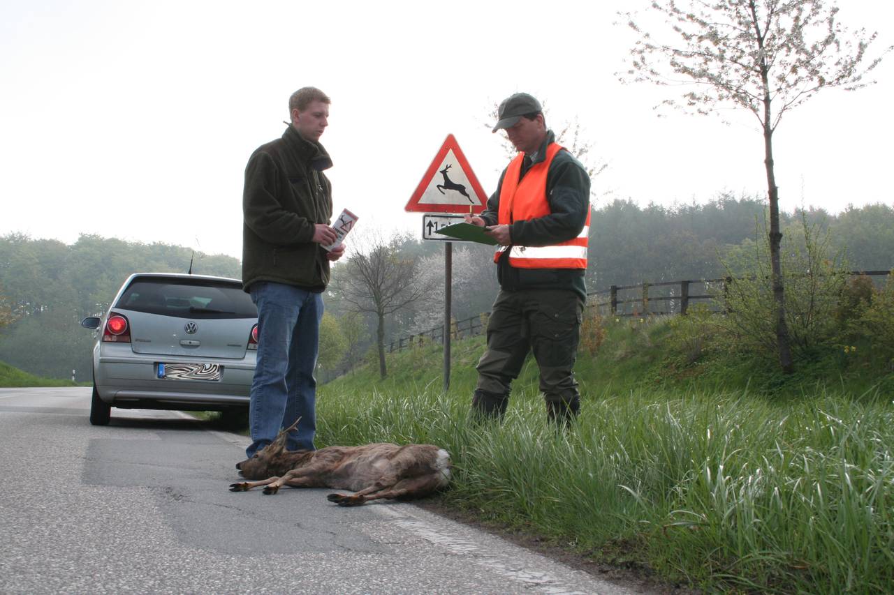 - Unfall unverzüglich der Polizei melden, und den Jagdausübungsberechtigten informieren.(wird ggfs von der Polizei gemacht)
