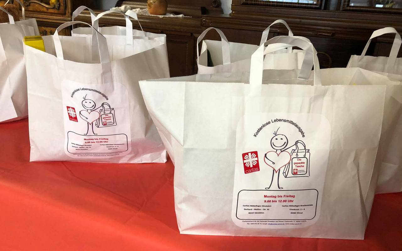 Eine große Papier-Tragetasche - voll mit Dingen, die man im Leben so braucht: Brot, Obst, oder auch mal ein Kuscheltier für die Kinder. Darüber freuen sich die Menschen, denen es - gerade in der Coronazeit - nicht so gut geht. Deshalb hat der Caritasverband in Dinslaken und Wesel - zusammen mit der Corona Soforthilfe der Aktion Mensch das Projekt "Die gepackte Tasche" ins Leben gerufen. Ab heute können sich sozial benachteiligte Menschen so eine Tasche mit haltbaren Lebensmitteln abholen - im Caritas "Möbellager" (Gerhard-Malina-Str. 91) in Dinslaken, oder in der "Brockenstube" (Friedenstraße 2-4) in Wesel - montags bis freitags ist hier jeder von 9 bis 12 Uhr willkommen. Sechs Monate lang läuft das Projekt - unterstützt durch Spenden.
