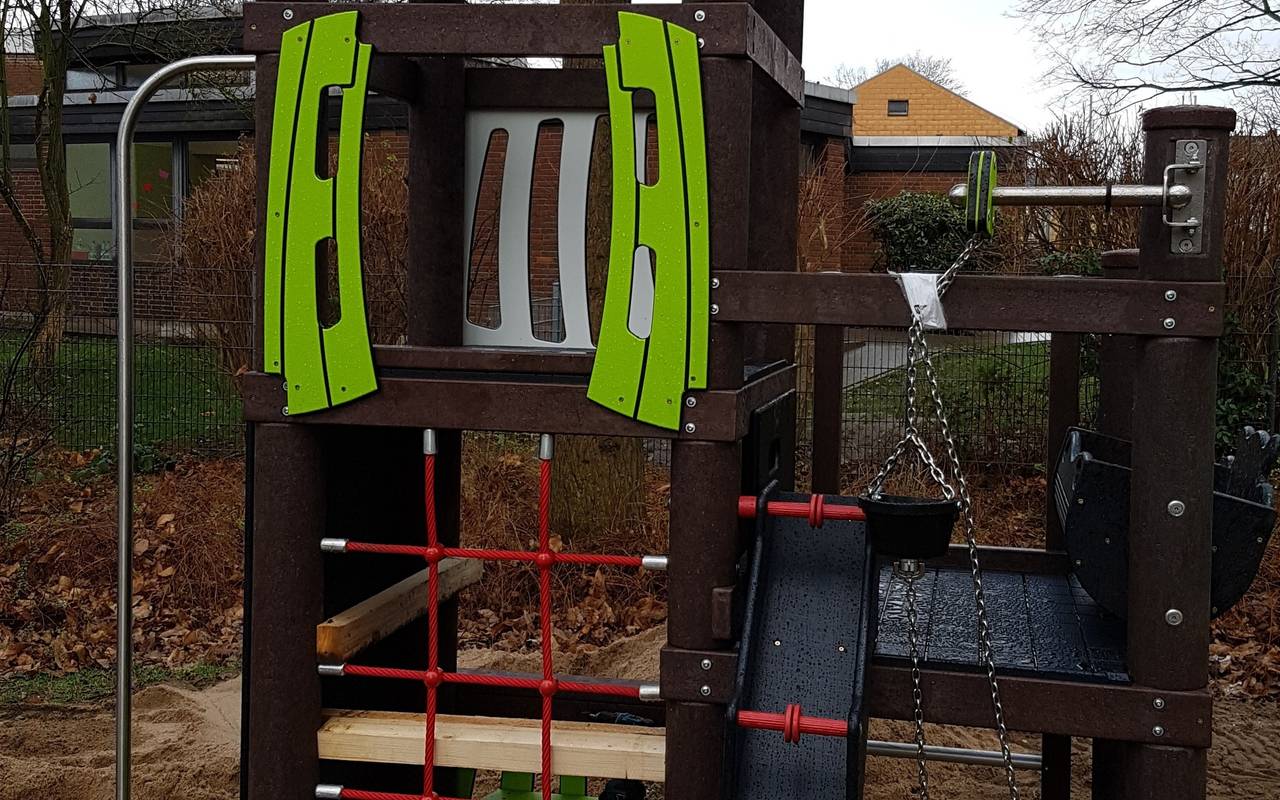 Die Anlage besteht aus über 15.000 alten Lebensmittelverpackungen, ist gesundheitlich unbedenklich und hat auch das Umweltsiegel "Blauer Engel". Inklusive Aufbau kostet das neue, recycelbare Spielgerät 9.800€. Das alte Klettergerüst ist nach 20 Jahren nicht mehr sicher und wird darum abgebaut.