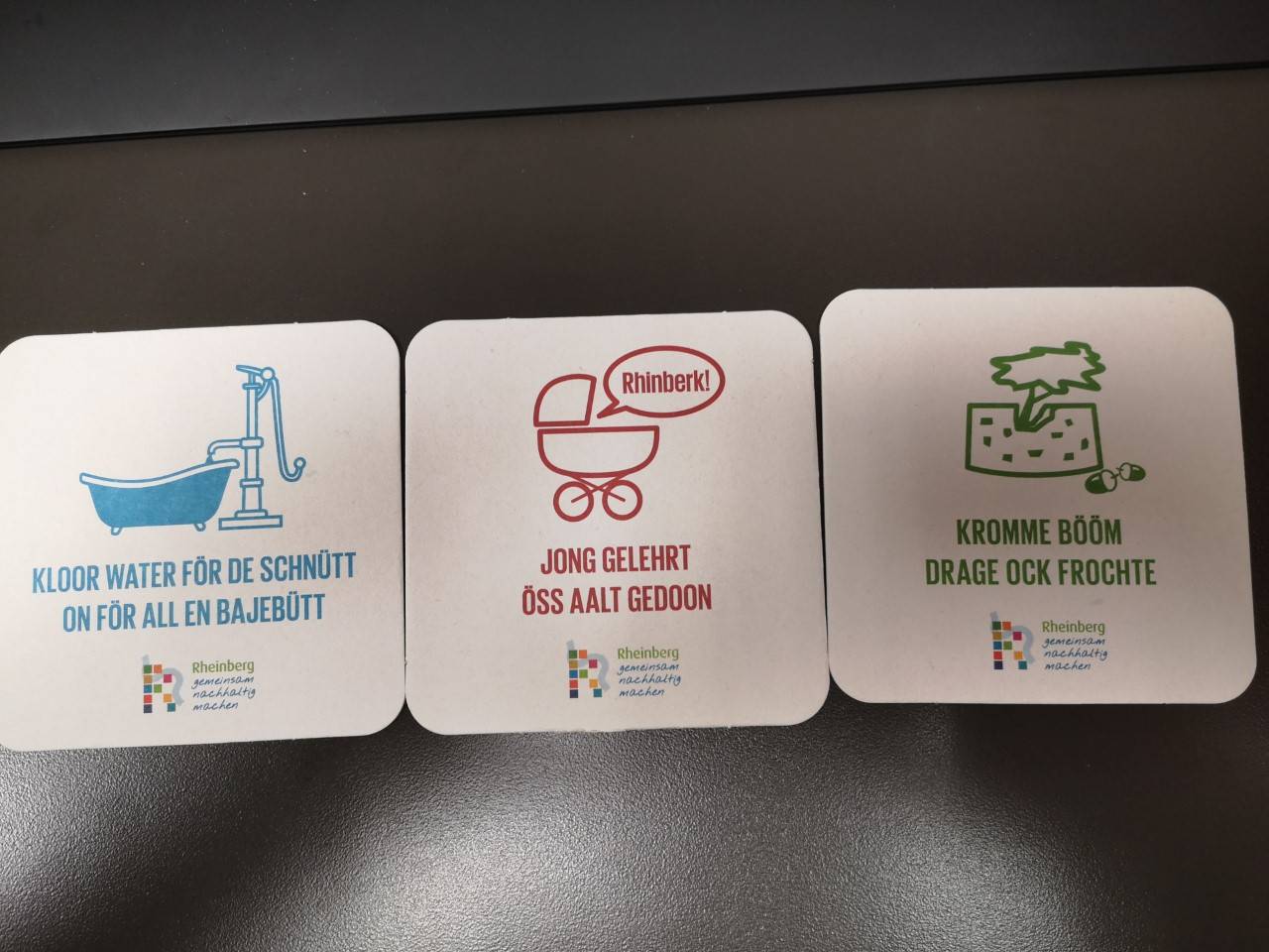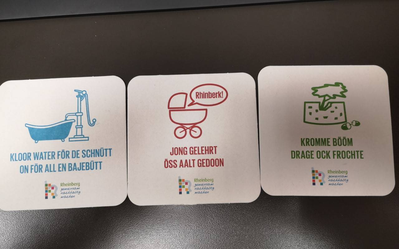 17 Ziele, 17 Deckel, 17 Botschaften: Die von den Vereinten Nationen formulierten Nachhaltigkeitsziele findet man in Rheinberg jetzt auf Bierdeckeln. Kurz und knapp auf den Punkt gebracht auf Rhinberkse Platt. Die eingängigen Sprüche vom "Rhinberkse Sprookverein Ohmen Hendrek" und die ortstypischen Motive machen die Bierdeckel schon jetzt zum Renner. Sie sollen jeden motivieren, sich mit dem Thema näher zu beschäftigen. Mitmachen können alle Gastronomen, Imbisse, Vereine oder auch Kirchengemeinden. Sie müssen sich nur bei der Stadt Rheinberg melden. 40tausend Botschaftsdeckel stehen zunächst zur Verfügung. Die Idee wird gefördert vom Ministerium für wirtschaftliche Zusammenarbeit und Entwicklung.