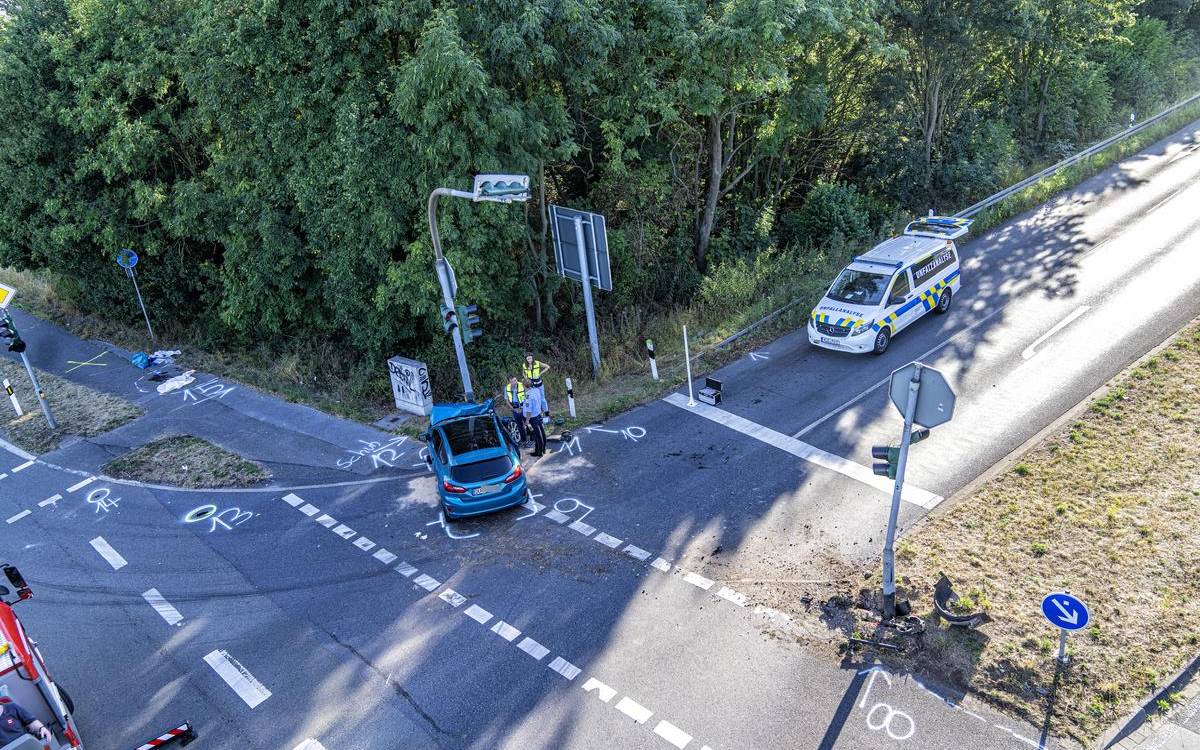In Rheinberg-Winterswick ist auf der B57 Richtung Moers gestern Nachmittag ein schwerer Unfall passiert, bei dem ein Mann ums Leben gekommen ist. Laut Polizei war ein 48-jähriger Autofahrer aus Duisburg an der Kreuzung zur B510 auf der Rechtsabbiegespur geradeaus an den wartenden Fahrzeugen vorbeigefahren und dann nicht abgebogen, sondern geradeaus auf den Fußgängerweg gefahren. Dort stieß er mit einem Mann auf einem E-Roller zusammen. Der 54-jährige Rheinberger wurde durch die Wucht weggeschleudert und prallte auf die Fahrbahn. Er starb noch an der Unfallstelle. Die B57 war noch bis in den Abend gesperrt.