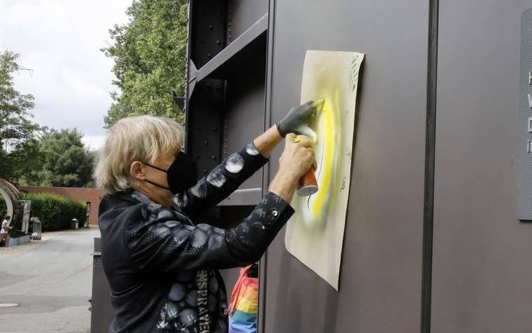 Das Oberhausener Gasometer hat eine neue "Banane" bekommen. Der Rheinberger Künstler Thomas Baumgärtel hat sie als besondere Wertschätzung aufgesprayt.