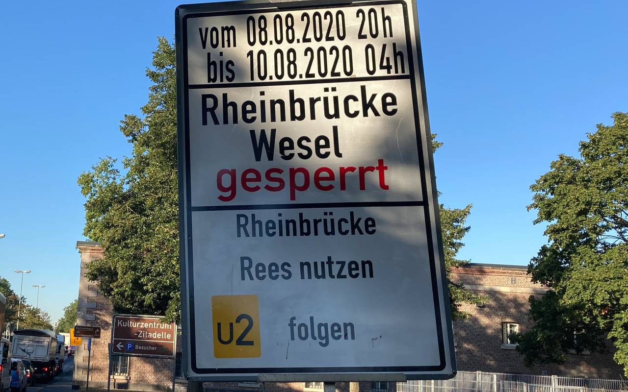 Wer den Rhein während dieser Zeit queren möchte, muss entweder die Reeser Rheinbrücke nutzen oder über Duisburg fahren. Alternativ bleibt die Fähre Walsum-Orsoy. Für Radfahrer und Fußgänger ist die Weseler Rheinbrücke allerdings frei.