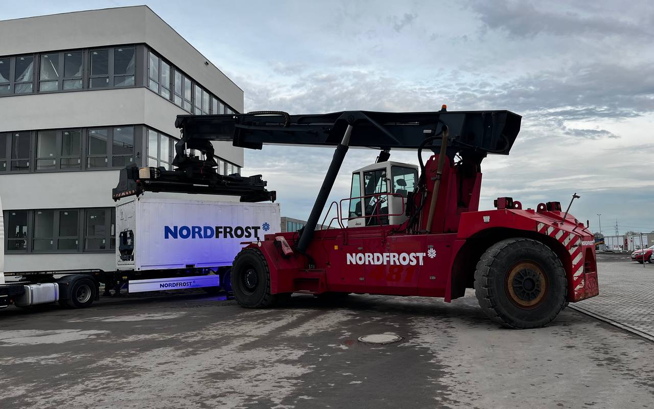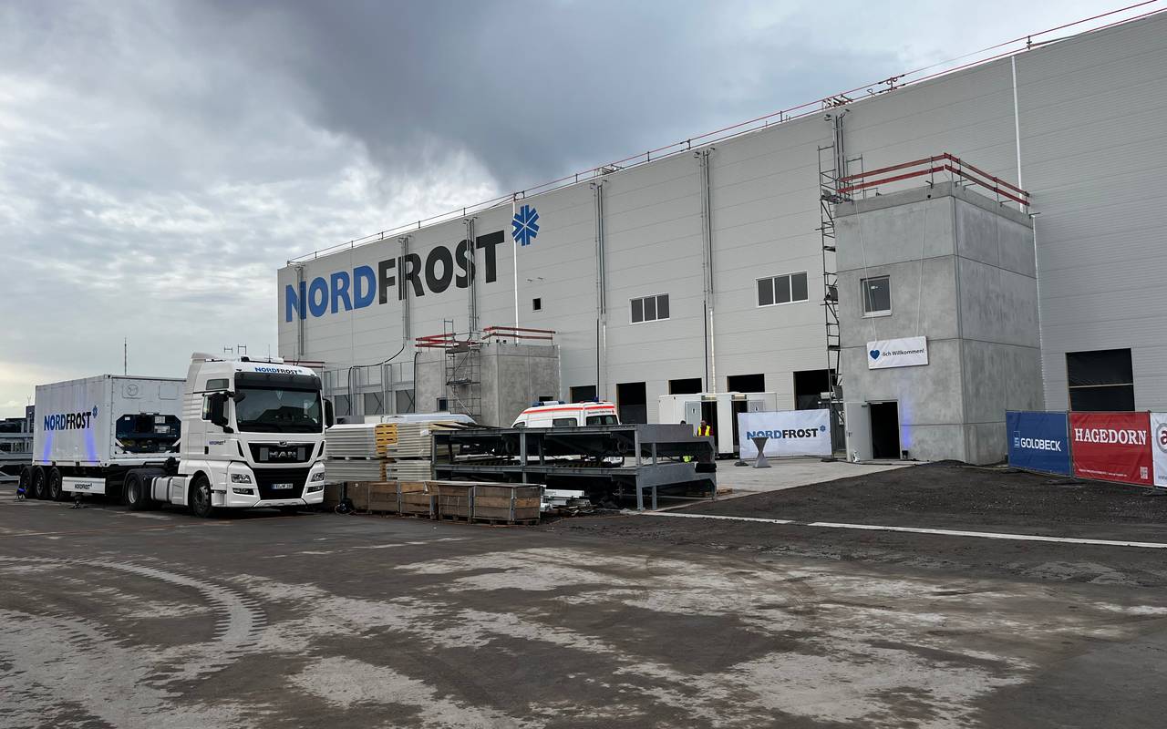 Beim Tiefkühlriesen "Nordfrost" in Wesel am Rhein-Lippe-Hafen wurde Richtfest gefeiert. Der Logistikdienst hat hier u.a. ein Container-Terminal entwickelt.