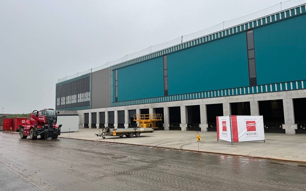 Ab dem kommenden Sommer wird die Supermarktkette REWE im Hafen Emmelsum in Voerde ein neues Logistikzentrum betreiben. Für das Gebäude, das größer ist als drei Fußballfelder, wurde nach kurzer Bauzeit heute Mittag Richtfest bereits gefeiert. Während der Bauphase wurde das Konzept so angepasst, dass das Gebäude nun faktisch ohne Gas auskommt. Riesige Solarpaneele auf dem Dach und Luft-Wärmepumpen sorgen für Strom und Wärme in der Halle. Mohamet Razzouki von der REWE-Gruppe ist vom Standort begeistert. Vor Ort könnten rund 50 Arbeitsplätze entstehen.