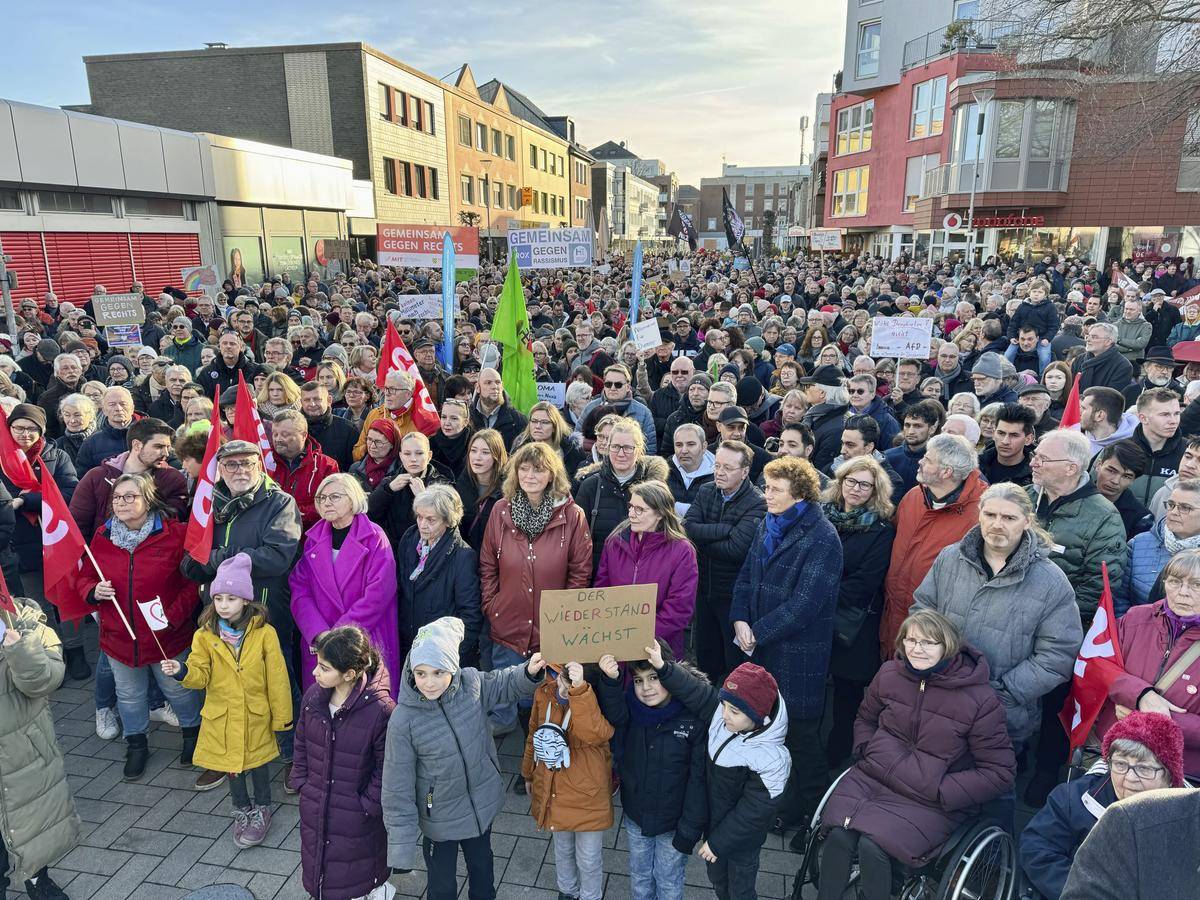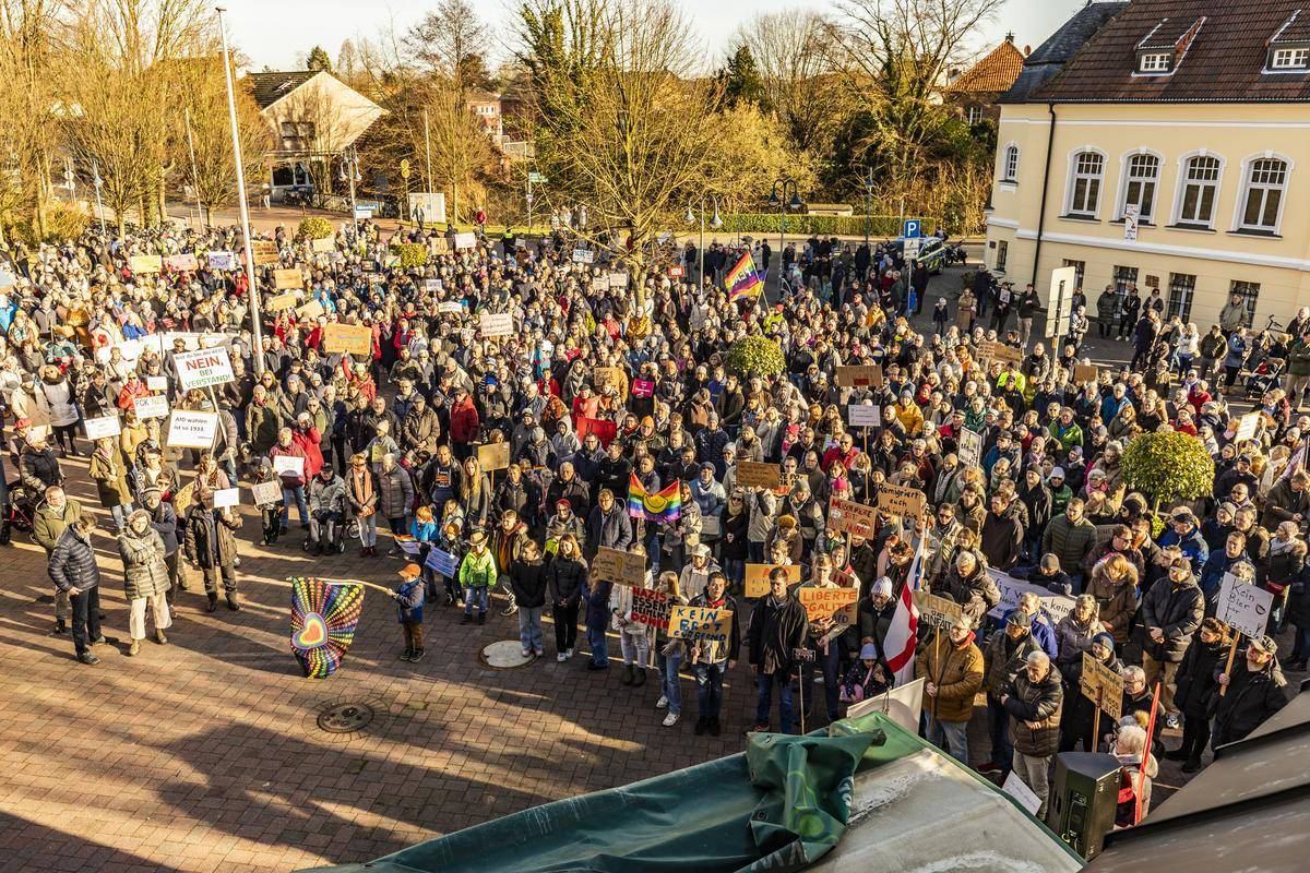 In Neukirchen-Vluyn gingen 1500 Menschen zusammen auf die Straße, in Xanten waren es 1000 auf dem Marktplatz und in Schermbeck laut Polizei 650 auf dem Rathausplatz. Demnach verliefen alle Demos störungsfrei. Anlass für die Proteste waren Berichte über ein geheimes Treffen zwischen Mitgliedern der AfD und Rechtsextremen in Potsdam. Unten seht ihr, welche Demos noch anstehen: