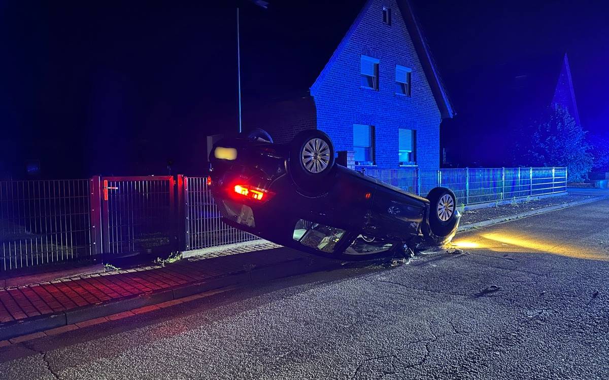 Von einem Wunder spricht die Polizei bei diesem Unfall in Schermbeck. Ein 26-Jähriger hatte sich mit dem Auto überschlagen, wurde dabei aber nicht verletzt.