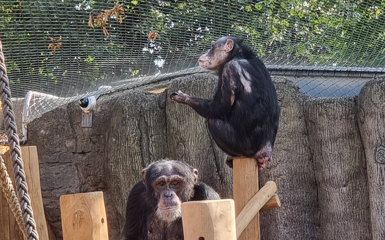 Für rund 400tausend Euro haben die Schimpansen in Krefeld eine neue Außenanlage bekommen. Das alte Zuhause von Bally und Limbo war bei dem Affenhausbrand zerstört worden.