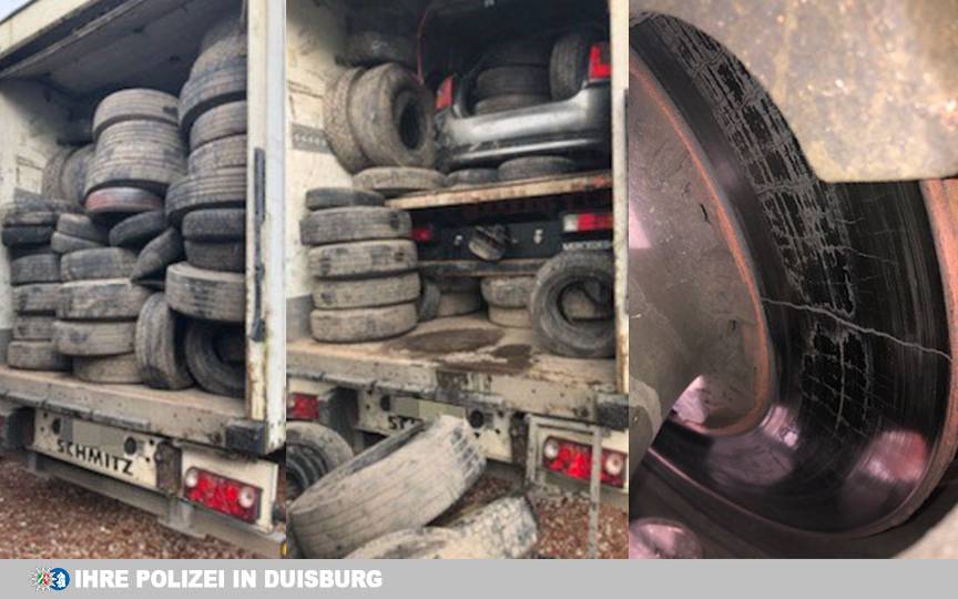 An der Rheinbrücke Duisburg Neuenkamp hat die Polizei heute einen Laster aus dem Verkehr gezogen, bei dem die Bezeichnung Schrott-Lkw noch ein Kompliment wäre.