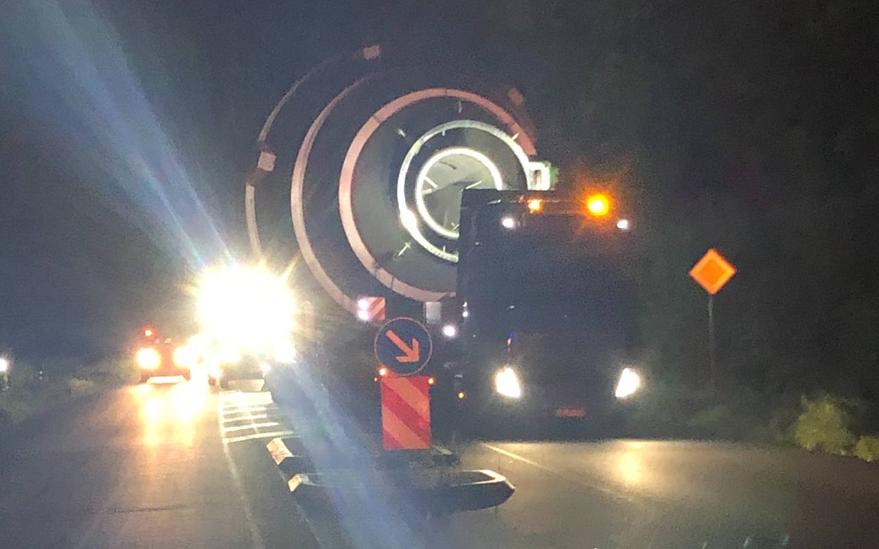 Für die 13 Kilometer brauchte er am Ende drei Stunden und 45 Minuten. In der Nacht lieferte ein Schwertransport einen riesigen Tank von Voerde-Friedrichsfeld nach Rheinberg-Borth.
