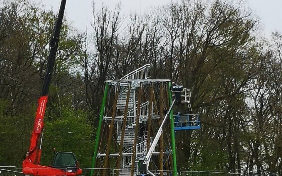 Ein Drittel des neuen Sonsbecker Aussichtsturmes steht schon, in acht Wochen soll er fertig sein. Danach muss noch das Umfeld gestaltet werden, unter anderem wird ein Waldlehrpfad errichtet. Wann eine Begehung des Turmes möglich ist, kann aufgrund der Pandemie noch nicht vorausgesagt werden. Die 26 Meter hohe Aussichtsplattform soll aber die Ankerattraktion der Römer-Lippe- Route werden. Die Gesamtkosten belaufen sich auf 923tausend Euro, 400tausend davon trägt die Gemeinde Sonsbeck.