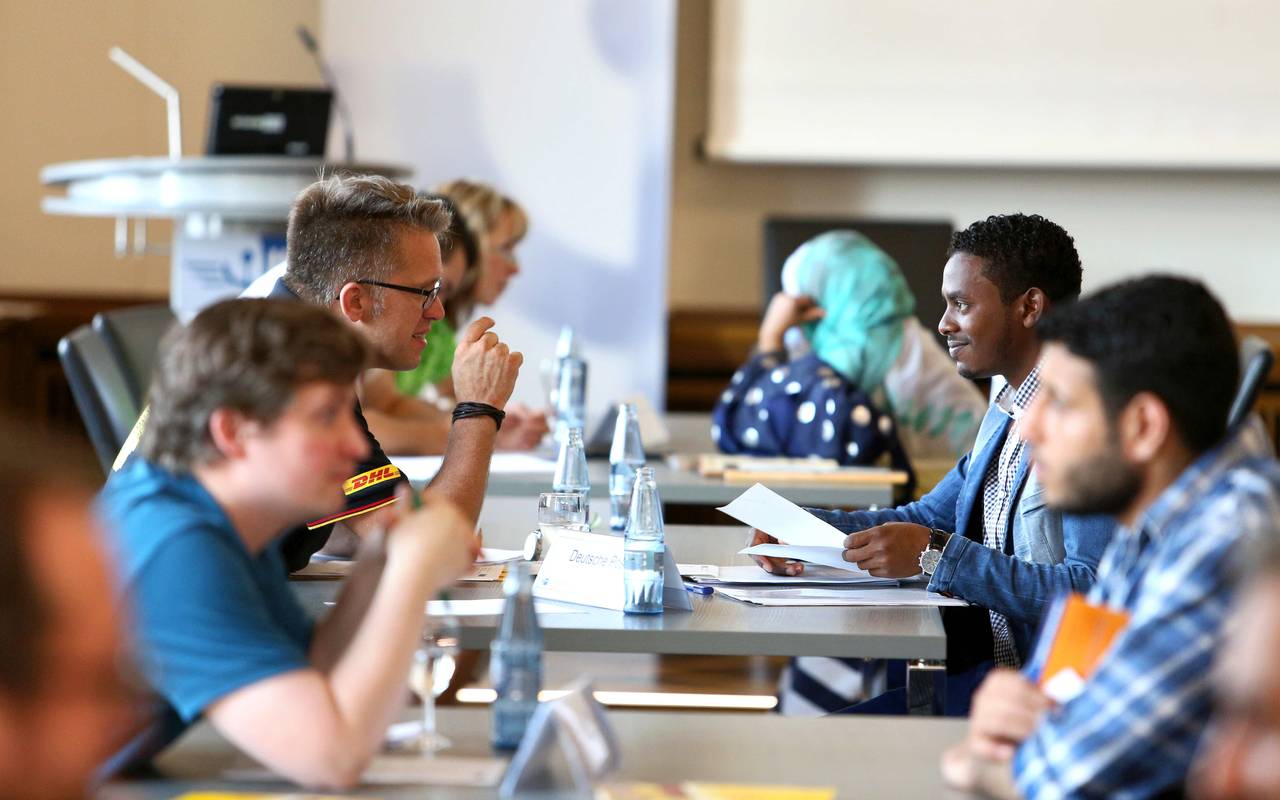 Um dem Mangel an Auszubildenden zu begegnen: Mehrere Unternehmen auf der linken Seite des Kreises versuchen bei einem Speeddating ihren "Nachwuchs" kennenzulernen.