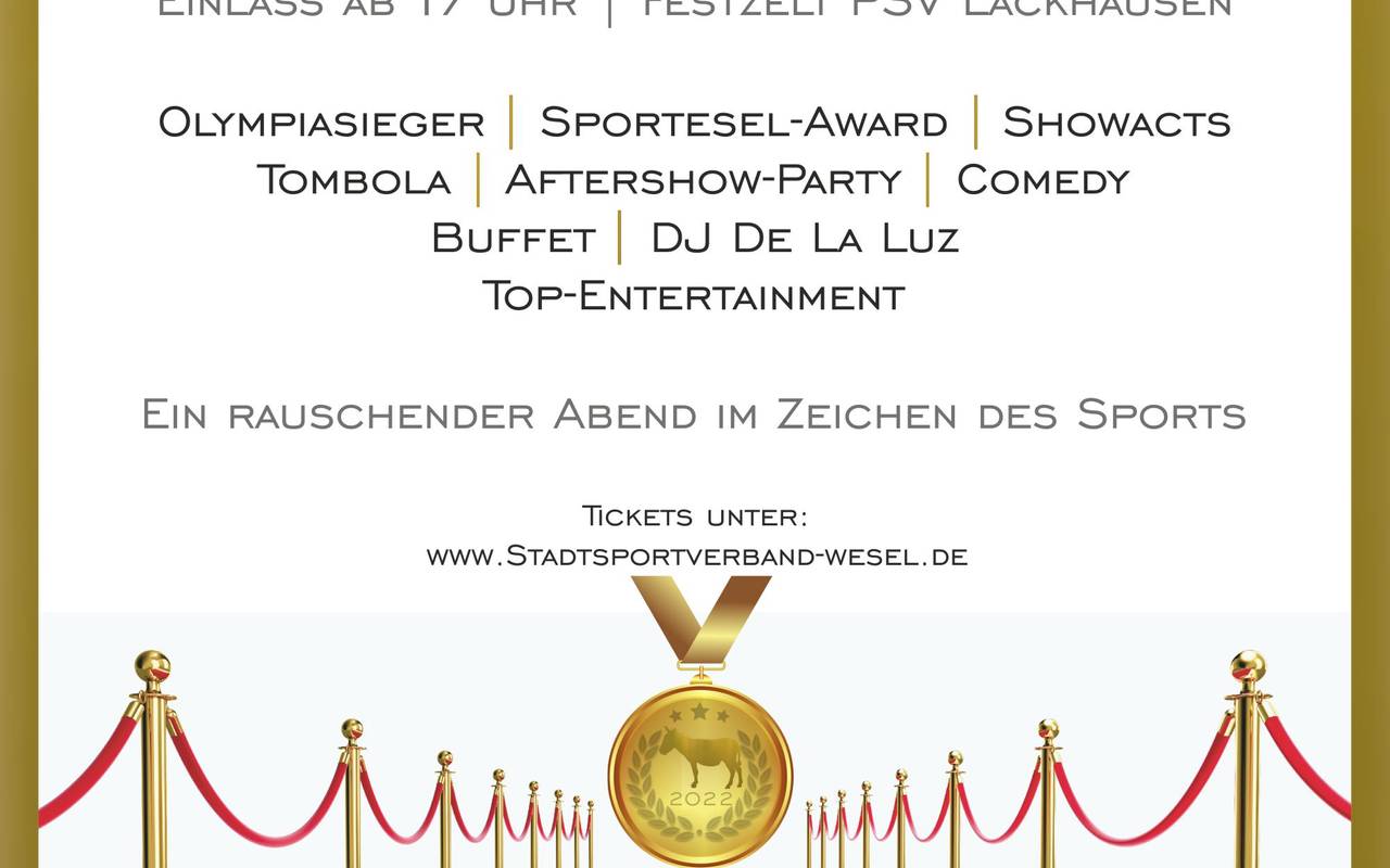 Der Stadtsportbund Wesel feiert am 4. Februar im beheizten Festzelt beim PSV Wesel eine Sportnacht. Olympia- und Paralympics - Gewinner werden auf dem rotem Teppich zu Gast sein. Unterhaltung, After-Show-Party, Tombola und Mitmach-Aktionen lockern die Veranstaltung zusätzlich auf. Über 400 der 500 Tickets sind bereits vergriffen. Tickets und weitere Infos gibt es auf www.stadtsportverband-wesel.de.