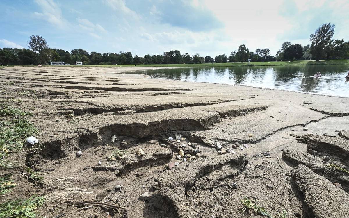 Am Auesee in Wesel hat der Starkregen Anfang der Woche ungewöhnliche Spuren hinterlassen. Der Strand hat sich in eine Kraterlandschaft verwandelt. Die Wassermassen haben große Stücke weggerissen und richtige Furchen hinterlassen. Die Löcher sind teilweise bis zu 50 Zentimeter tief. So heftig hatte es den Auesee-Strand noch nie erwischt. Er muss jetzt wieder aufgefüllt werden. Die ASG ist laut NRZ schon dabei, Material zu besorgen. Bis zum Wochenende hofft sie, zumindest einen Teil wiederhergestellt zu haben. Dann findet auch der Weseler Triathlon mit 560 Sportlern statt - der ist demnach aber nicht gefährdet.