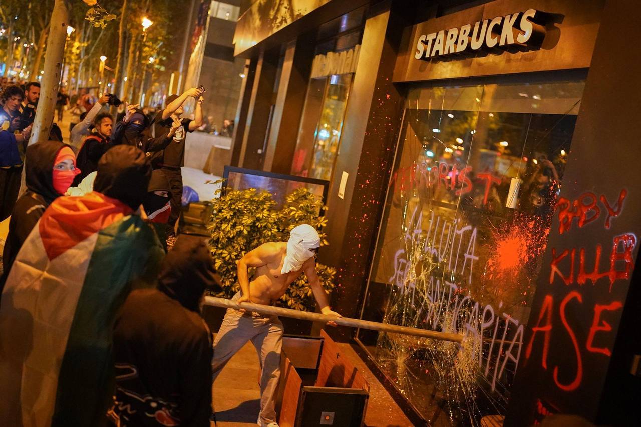Im Fernsehen war zu sehen, wie Vermummte große Müllcontainer aus Plastik in Brand setzten und Fensterscheiben eines Cafés und eines Schnellimbisses einschlugen. Schon zuvor war es am Bahnhof Sants zu Auseinandersetzungen mit der Polizei gekommen. Demonstranten hätten dort versucht, die Basketballmannschaft von Hapolel Jerusalem am Verlassen des Bahnhofs zu hindern, berichtete der staatliche TV-Sender RTVE. Die Israelis sollten ein Spiel ohne Publikum gegen den lokalen Verein Baxi Manresa bestreiten. Die Polizei setzte Pfefferspray ein, Demonstranten warfen Flaschen und andere Gegenstände.
