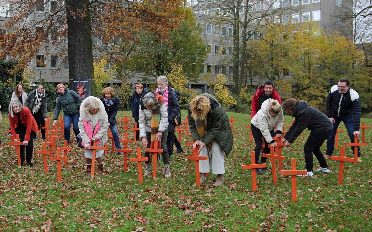 Im Kreishaus wurden außerdem strahlend orangene Stühle als Mahnmal platziert, die den Slogan „Kein Platz für Gewalt gegen Frauen im Kreis Wesel“ tragen. Noch bis Montag stehen 150 orange Holzkreuze hinter dem Rathaus in Moers. Jedes Kreuz steht für eine durch Femizid getötete Frau. Auch bei uns in der Region gab es bereits Fälle von Femiziden. Im Dezember wurde eine Frau in Neukirchen-Vluyn von ihrem früheren Lebensgefährten getötet. Einige Monate zuvor hatte es einen Femizid in Duisburg gegeben. Danach bekam eine Online-Petition, die mehr Schutz für Frauen fordert, starken Zulauf.