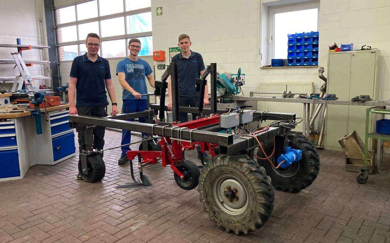 Drei Auszubildende der Firma LEMKEN aus Alpen sind Landessieger bei "Jugend forscht". Sie konnten mit einer MINI-Hacke zur mechanischen Unkrautbekämpfung überzeugt.