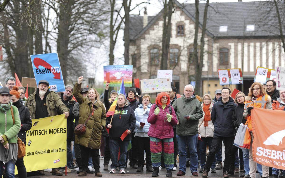 Bei einer Demonstration am Sonntag gegen die AfD kamen 300 bis 400 Menschen nach Rheinberg-Orsoy. In einer Gaststätte dort hielt die AfD Kreis Wesel ihren Parteitag ab.