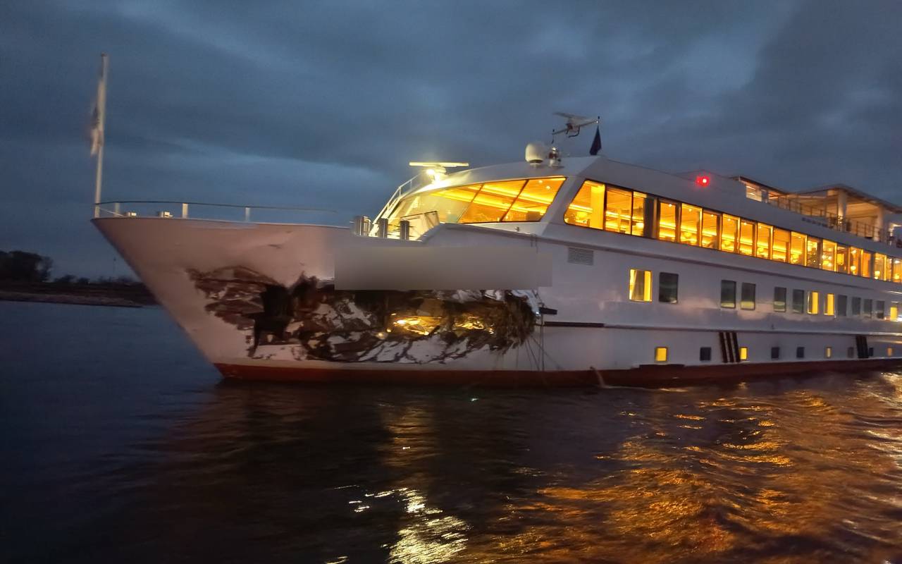Unfall mit Flusskreuzfahrtschiff auf dem Rhein bei Voerde
