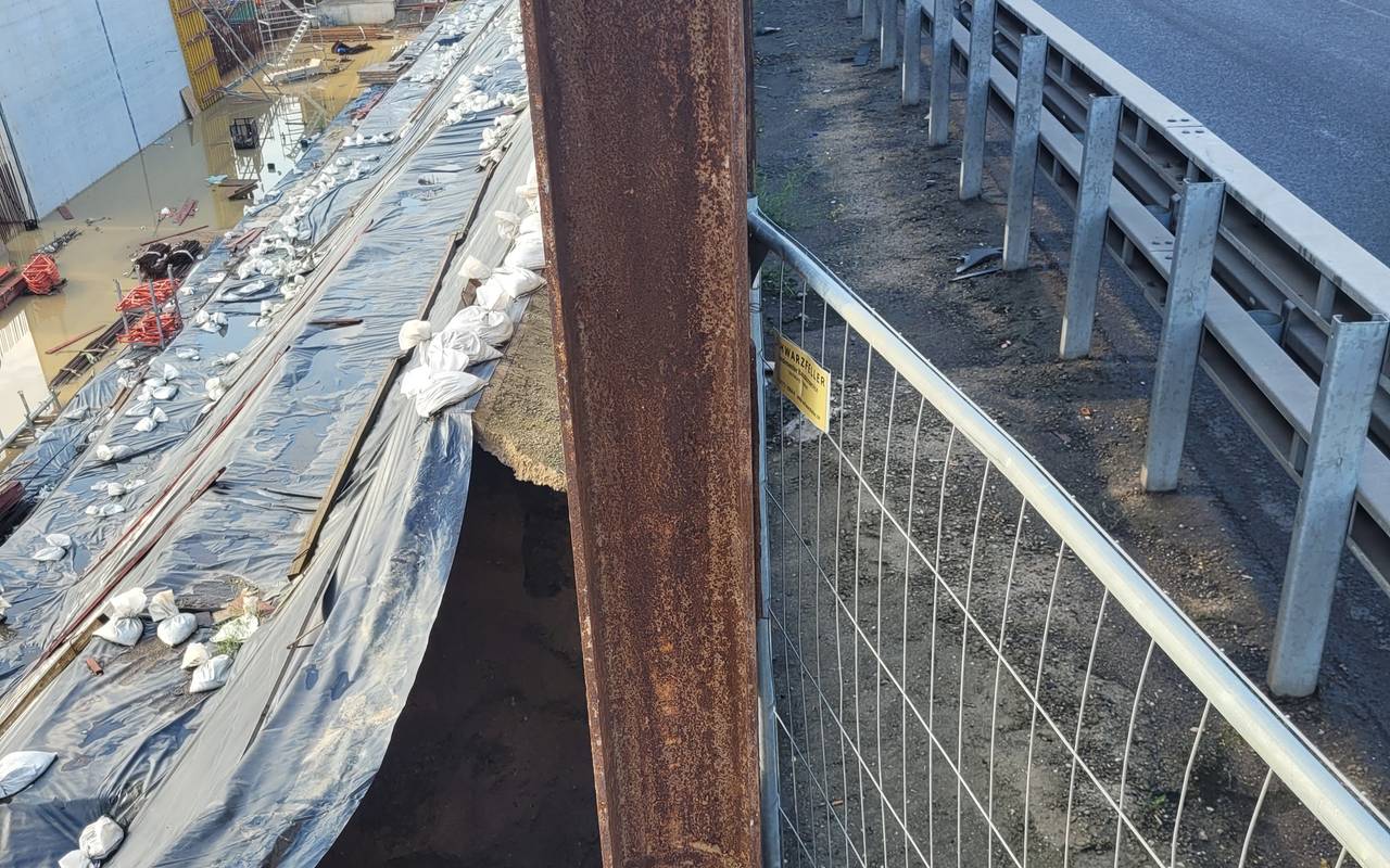 Auf der A3 gibt es nach dem Unwetter einen neuen Engpass. Mitten in der Baustelle am Kreuz Kaiserberg ist ein Stück Böschung weggerutscht. Eine Spur Richtung Arnheim ist gesperrt.