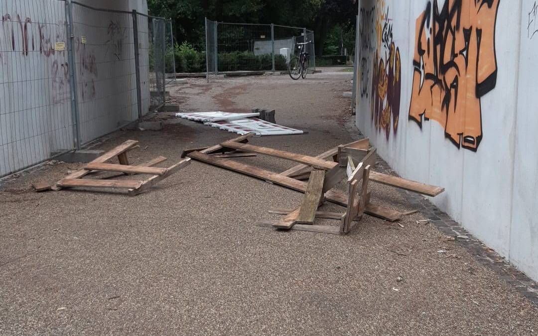 Vandalen haben mehrere Bereiche im Moerser Schlosspark und im Freizeitpark in der Nacht vom 6. auf den 7. Juli verwüstet. Zeugen wenden sich bitte an die Polizei.