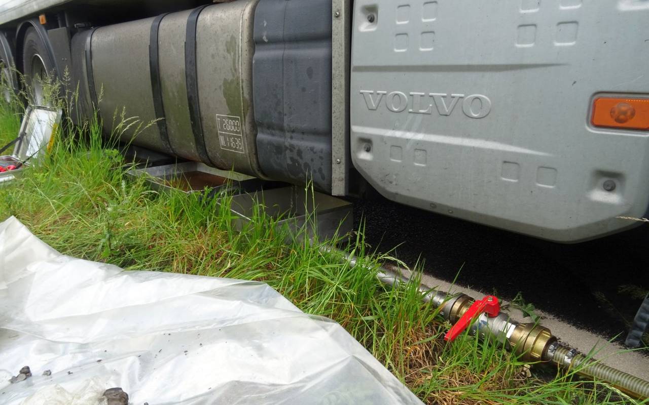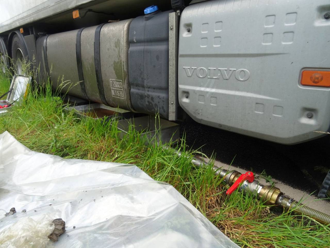 Auf der A57 in Richtung Niederlande hat gestern Mittag ein LKW Diesel verloren. Der LKW war offenbar kurz vor Uedem über einen Gegenstand gefahren und hatte dabei den Tank beschädigt. Daraufhin liefen mehrere hundert Liter Kraftstoff aus. Die Feuerwehr Sonsbeck fing den Diesel auf, dichtete das Leck ab und sicherte die Einsatzstelle. Unter anderem mussten der Standstreifen und die rechte Fahrspur für mehrere Stunden gesperrt werden. Nach der Bergung des LKW rückte auch die Untere Wasserbehörde aus, offenbar war auch Kraftstoff ins Erdreich gesickert.