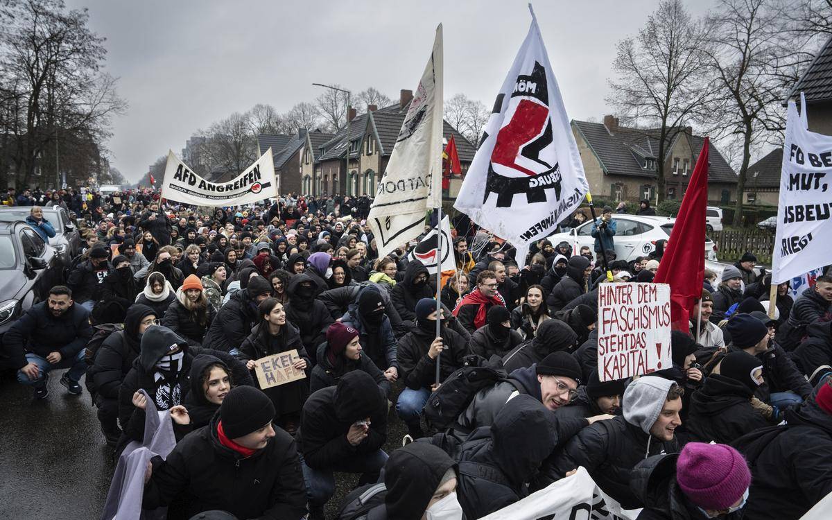 In Duisburg haben gestern viele Menschen ein Zeichen für Toleranz gesetzt. Insgesamt 2400 trafen sich nach Schätzungen der Polizei in Homberg - sie liefen in einem Aufzug von der Moerser Straße bis zur Glückauf-Halle. Dort hatte sich die AfD zum Neujahrsempfang getroffen. Laut Polizei verlief die Demo friedlich. Bei der anschließenden Kundgebung wurde ein Böller geworfen, verletzt wurde niemand. Außerdem gab es zwei Anzeigen: In einem Fall hatte ein Mann den Hitlergruß gezeigt. Im zweiten Fall hat die Kripo die Ermittlungen wegen Sachbeschädigung aufgenommen: Unbekannte hatten in der Nacht zum Samstag Eingangstüren der Glückauf-Halle mit Ketten und Vorhängeschlössern verriegelt und Schlüssellöcher verklebt.