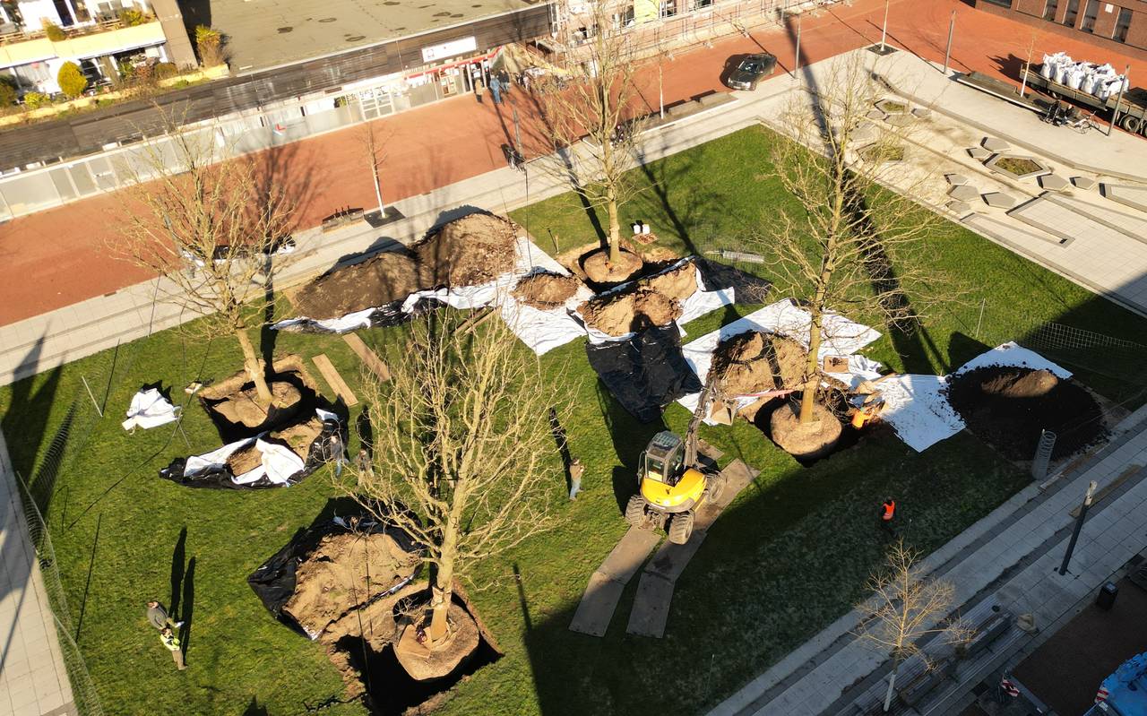 Vor dem Rathaus in Kamp-Lintfort stehen jetzt vier Stieleichen. Die 16 Meter hohen Bäume vor dem Rathaus sollen an die Opfer von Krieg und Terror erinnern.
