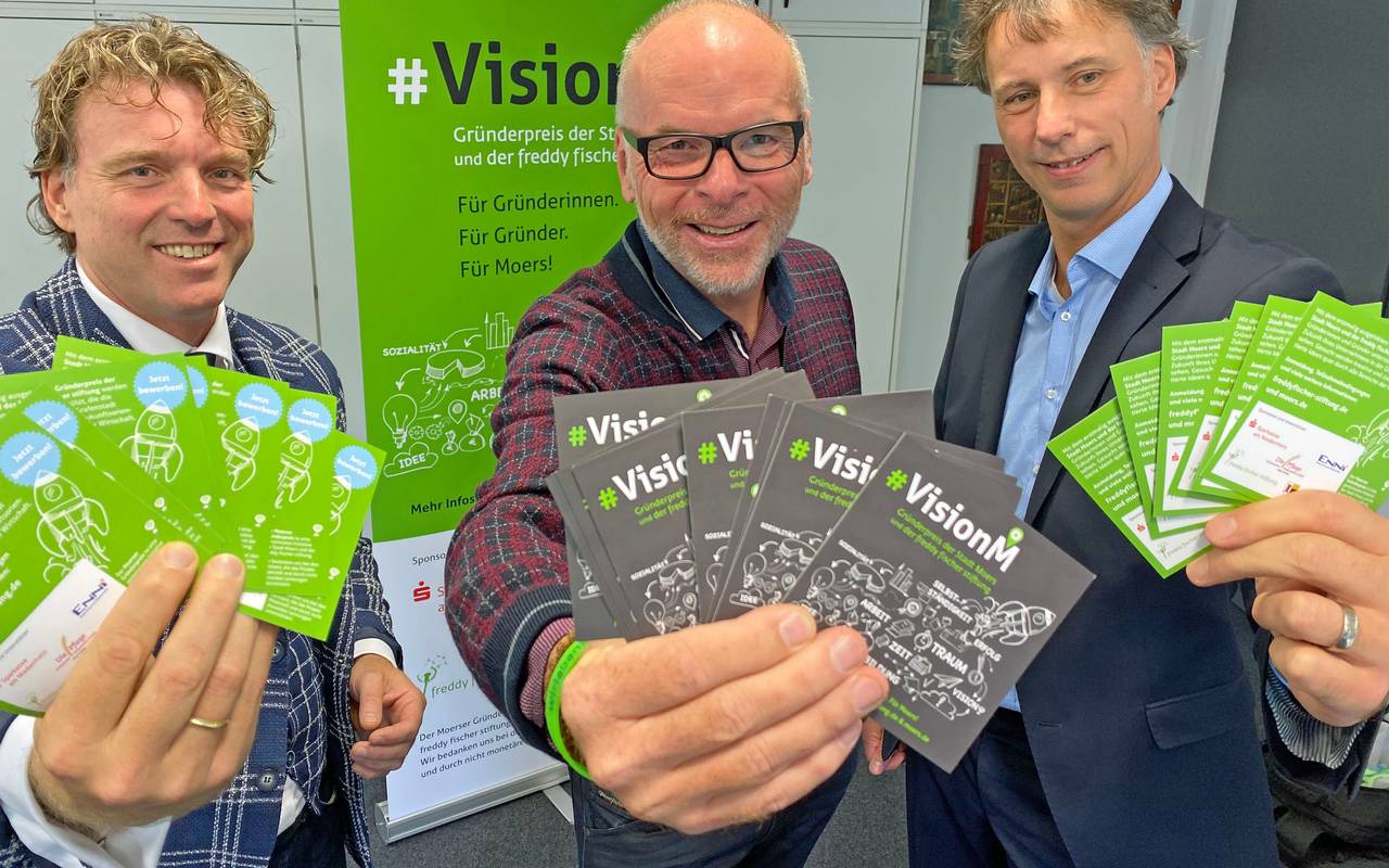 In Moers gibt es einen neuen Preis für junge Unternehmer. Mit dem "visionM" will die Stadt Gründer fördern, Unterstützung kommt auch von der ENNI und einer Stiftung. Der Preis ist mit 10.000 Euro dotiert, bis Ende des Jahres kann man sich bewerben. Das geht auch online mit Audio- oder Video-Clips.