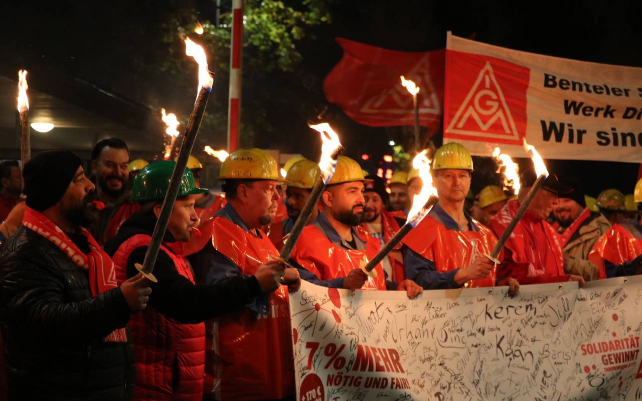 Warnstreiks in der Nacht bei Benteler in Dinslaken