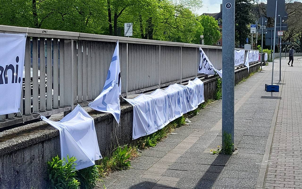 Auffällige über 260 Meter lange Werbebanner fürs Moers Festival sind offenbar teilweise demoliert worden. Sie waren erst einen Tag vorher am Parkdeck des Wallzentrums angebracht worden. Laut NRZ wurden 20 Meter des Banners quasi abgehangen, indem viele Kabelbinder durchtrennt wurden. Verstörend ist der Vandalismus auch, weil es beim Festival Mitte Mai auch um respektvollen Umgang in Zeiten von Krisen und Kriegen geht.