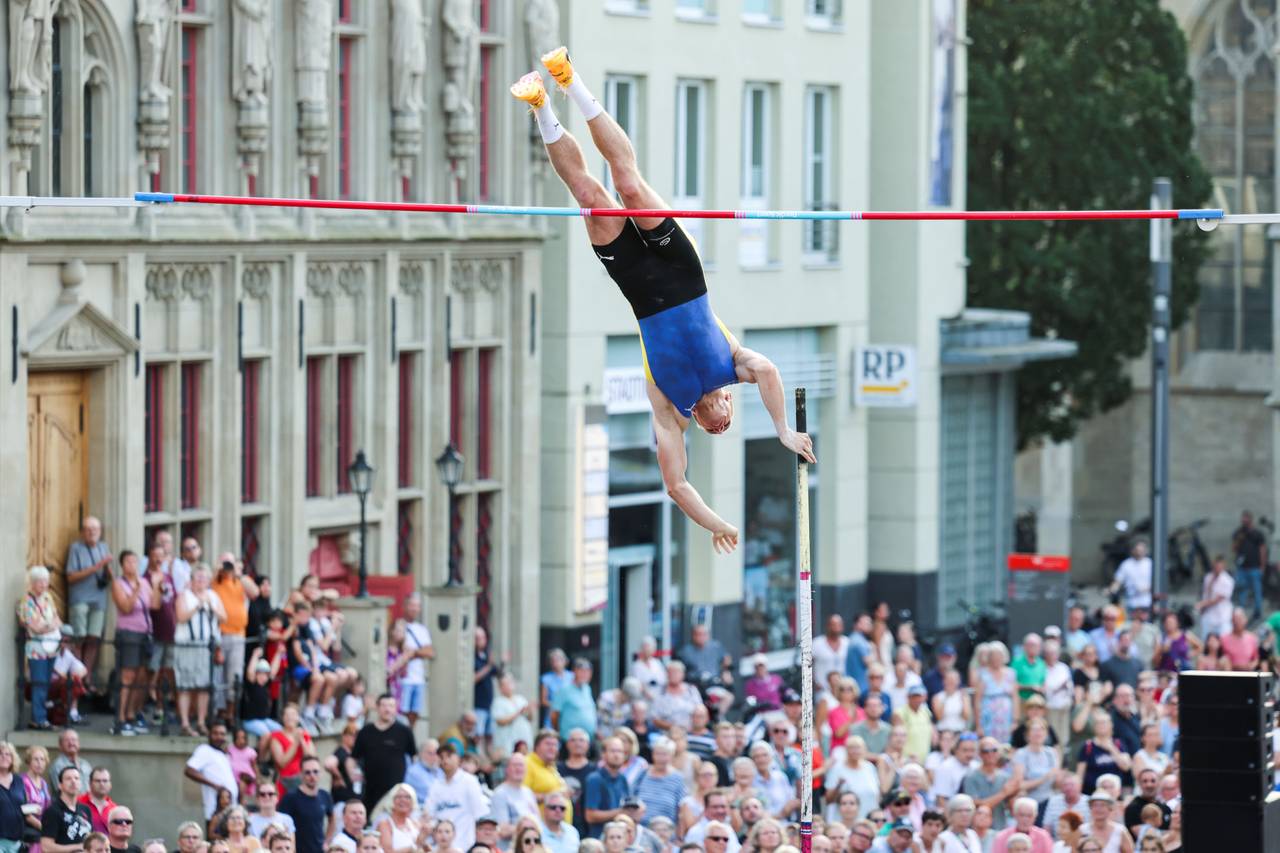 Der Aufbau lief planmäßig - Petrus spielt mit. Der Große Markt in Wesel wird wieder zur SportArena, und das vor der fantastischen Kulisse des Willibrordi-Doms. 14 Uhr 30 beginnt ein U 20 Wettbewerb, ab 17 Uhr 15 sind die großen Jungs am Start. Wir empfehlen FRÜH da zu sein. Es wird rappelvoll - der Eintritt ist frei. Die Stimmung wird auch dank eines DJs und der persönlichen Musik der Springer bestens sein. Auch sportlich geht es um was: Die Athleten können sich mit 5,82 Meter für die nächste WM in Tokio qualifizieren. Sie sind hochmotiviert.
