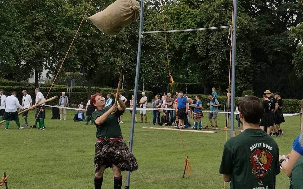 Der Heilige Petrus meinte es weitgehend gut mit den Ersten Weseler Highland Games. Ein Wolkenbruch zwischendurch, liebevoll schottischer Sonnenschein genannt, sorgte für eine halbstündige Unterbrechung der Spiele. Die Mannschaften nahmen es sportlich und mit Humor. Alle Disziplinen wurden absolviert. Die Männer und Frauen gaben alles.