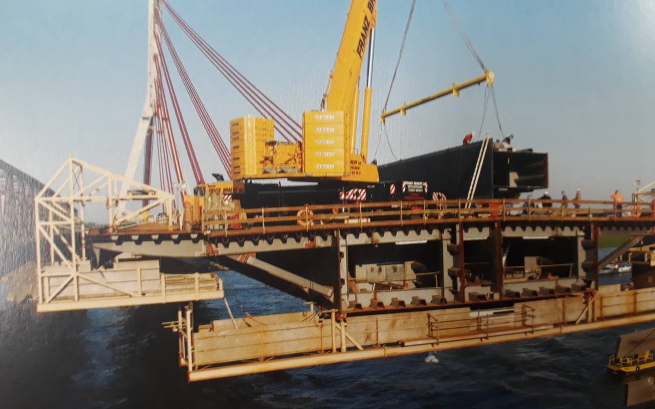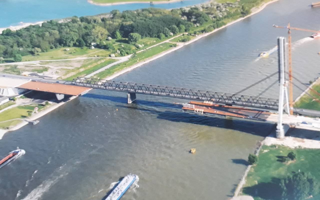 Bei Planung und Bau des Jahrhundertwerkes mussten zahlreiche Herausforderungen gemeistert werden. Dies ist ohne große Unfälle gelungen, es gab keine Toten oder schwerer verletzten Arbeiter, sagte uns Ingenieur Hans Löckmann erleichtert. Der Zeitplan wurde durch die Insolvenz der Firma Donges um rund vier Monate verzögert. Die Kosten von 60 Millionen sind ebenfalls im Toleranzbereich geblieben. Heutzutage ist das leider nicht mehr selbstverständlich. Eine solche Konstruktion hatte es bis dahin nicht gegeben. Neu war die Seilaufhängung mit den Litzenbündeln, die sehr innovativ, aber auch teuer ist. Auch die Konstruktion und der Bau an sich waren für viele Neuland. Der Brückenschlag wurde im freien Vorbau, in einem Vortriebsverfahren, Schritt für Schritt weitergebaut. Das sogenannte Taktschiebeverfahren in diesen Größenordnungen war für alle Beteiligten ein Nervenkitzel, erinnert sich der Projektleiter Hans Löckmann. Dabei musste der Schiffsverkehr teilweise gesperrt werden. Deshalb wurde der Montag genutzt, weil dieser Wochentag der verkehrsärmste Tag auf dem Rhein ist. Hintergrund: Am Sonntag wird in Rotterdam nicht geladen. 2009 wurde das allgemein als sehr schön titulierte Bauwerk seiner Stimmung übergeben. Seit März 2012 wird die Niederrheinbrücke bei Dunkelheit auch beleuchtet, dank des Sponsors ALTANA.