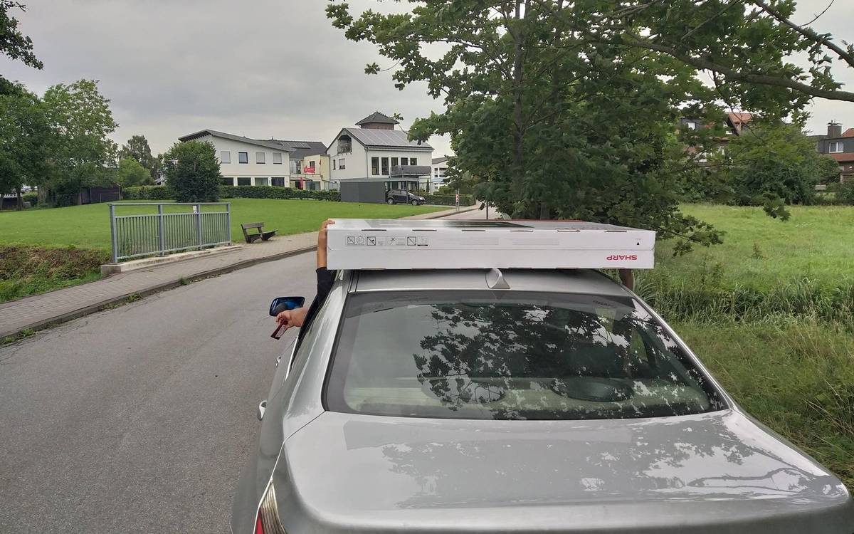 Zu groß für den Kofferraum - Familie aus Xanten transportiert Fernseher auf Autodach