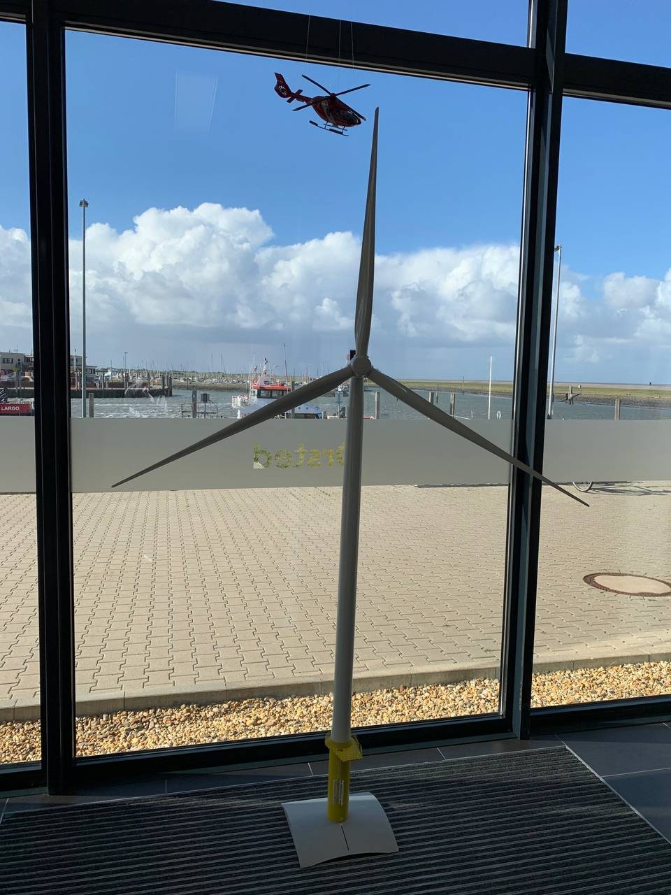 Nach dem Besuch des LNG-Terminals in Brunsbüttel hat sich Thorsten Ortmann zum Windkraftparkt Norddeich aufgemacht und die Windkrafträder aus der Luft mit dem Helikopter inspiziert.
