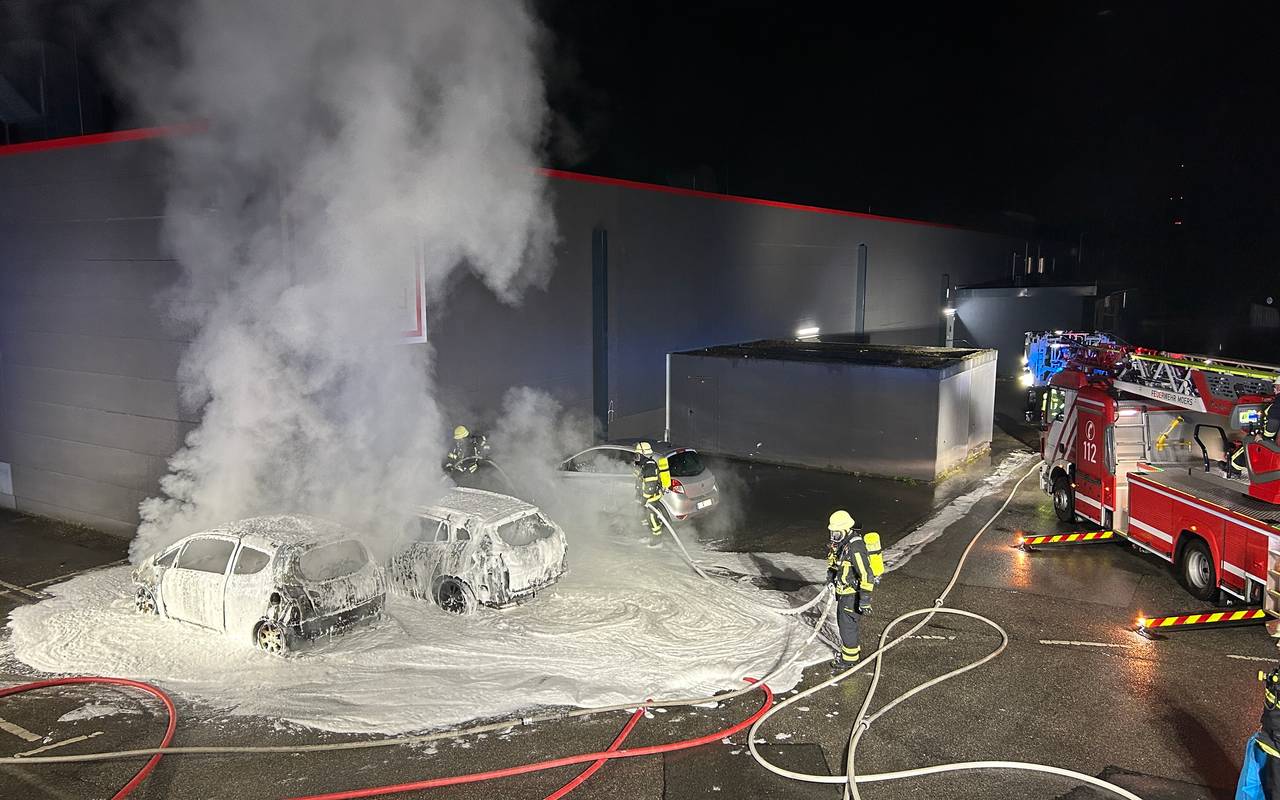 Zwei brennende Autos auf Supermarktparkplatz in Moers