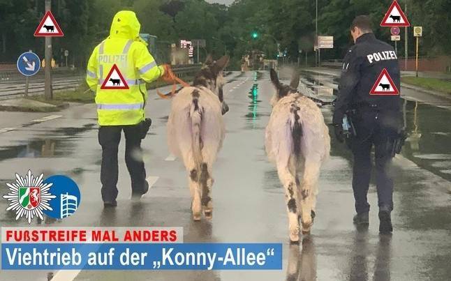 Trotz Sommerferien gab es auf den Straßen in Oberhausen heute teils größere Verzögerungen: Zwei Esel sind aus dem Kaisergarten ausgebrochen und verursachten eine Sperrung der Konrad-Adenauer-Allee.