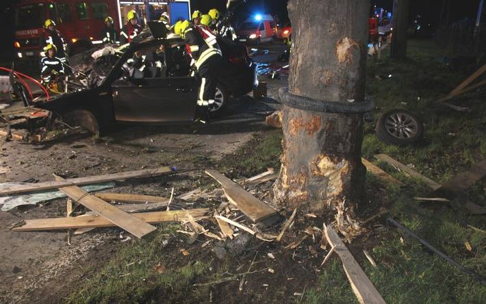 In Rees ist ein Auto in der Nacht von der Weseler Landstraße abgekommen und gegen einen Baum geprallt. Der Fahrer wurde schwer verletzt, zwei Mitfahrer starben an der Unfallstelle.
